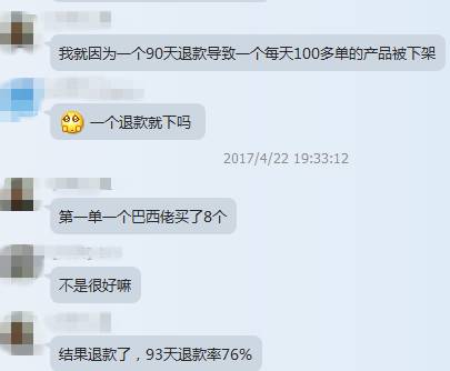 近日,一位卖家在群里讲了自己的经历,因为高退款率,导致自己一个日出100多单的爆款产品被下架了!