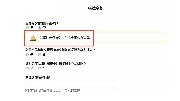 红框位置标明,需要接受有注册商品的品牌!这里就有很大的迷惑性了,到底也是是否一定要R呢,根据卖家亲测其实TM也能备案,重点是有经过认证的Serial Number。下面会具体介绍自助注册后,Serial Number如何获得!