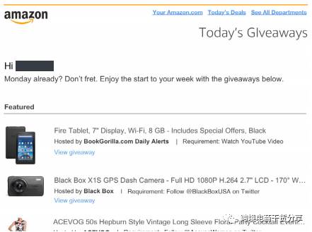 您可以向您的买家分享抽奖,也可以公开分享,以此来扩大影响力并将您的品牌介绍给更多买家。公开的亚马逊抽奖通过“今日抽奖”进行推广,这是一种订阅的电子邮件,注册获取新商品信息并参与抽奖的数千名订阅者会收到这一电子邮件。