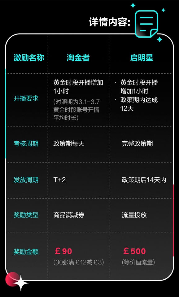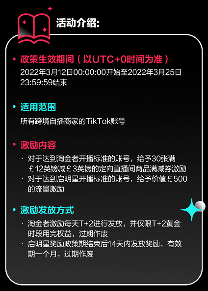 英国TikTok用户活跃的高峰在英国时间16-0点(中国时间:0-8点),是其它时间段的2-10倍,是英国流量的黄金时段,因此激励商家在这个时段进行直播,吻合英国用户下班后在TikTok的高活跃高消费状态,事半功倍,带货效率翻番。