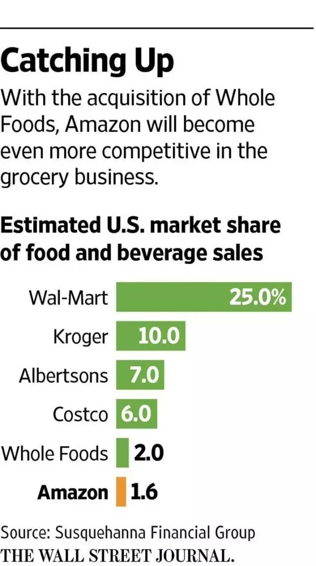 文章2:《Amazon's Grocery Ambitions Spell Troubles for Big Food Brands》,WSJ, 06/26/2017