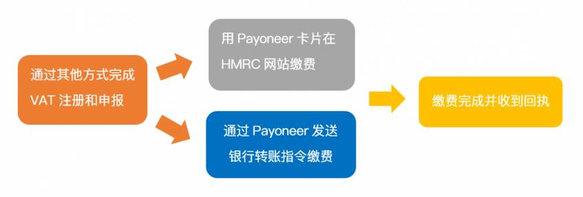 Payoneer现在为您提供方便快捷的VAT缴费方案,让大家顺利地在完成VAT注册和税务申报后,在最短时间、低价甚至免费完成HMRC缴费。下面向您介绍Payoneer卡片缴费和Payoneer银行转账两个途径: