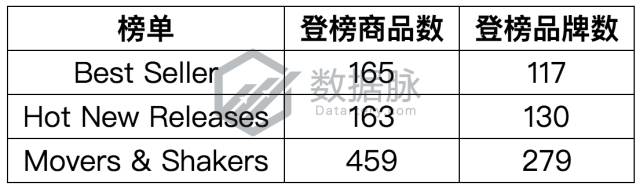 根据上周Movers & Shakers榜单上各个品牌下商品的登榜次数,我们对登榜的品牌进行了排序,其中排名靠前的五个品牌如下所示: