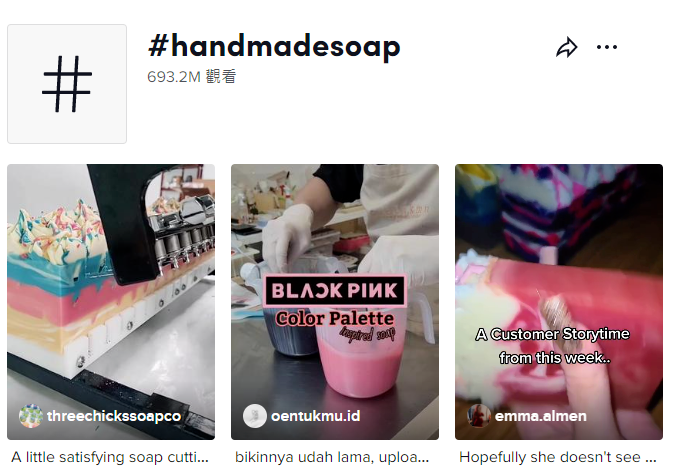 手工精油皂在国外也有不俗的热度,标签#handmadesoap,累计播放量就近70亿次。
