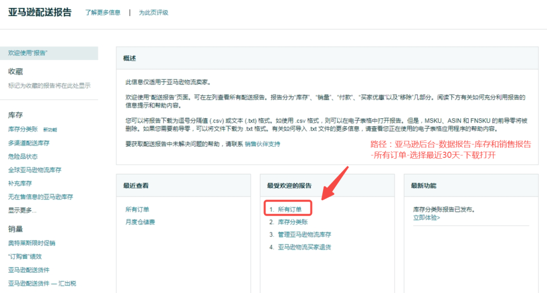 第1步,后台下载订单报告。路径:后台-数据报告-库存和销售报告-所有订单:
