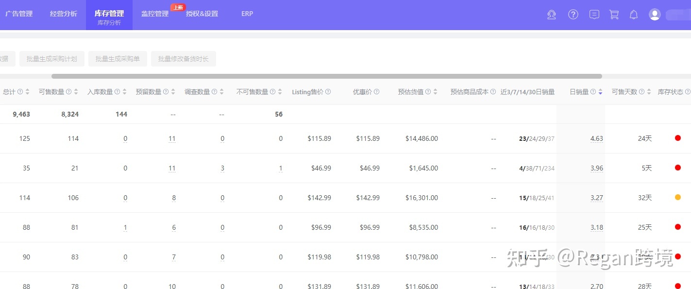 根据可售天数进行评判, 在10天内(7-10天为补货周期)定义为热销款,这时候就算补货也有可能会出现断货情况。 30天内为正常款的产品,可以根据平时的规定制定补货计划。 超过30天以上为滞销款,滞销款的产品需要想办法尽快处理掉,这类产品才是占压我们利润的主要因素。