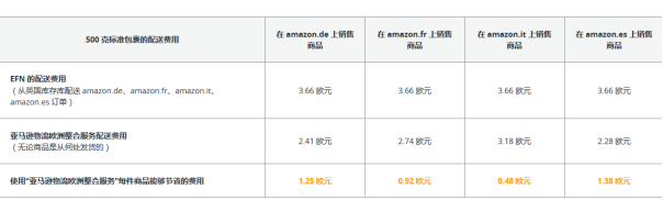 EFN:亚马逊收取的FBA费与订单生成的市场保持一致,加上从母国的运营中心发货的欧洲配送网络使用费。就是FBA费和EFN费(efn费现已包含在单件FBA配送费里,不做额外附加费收取)。