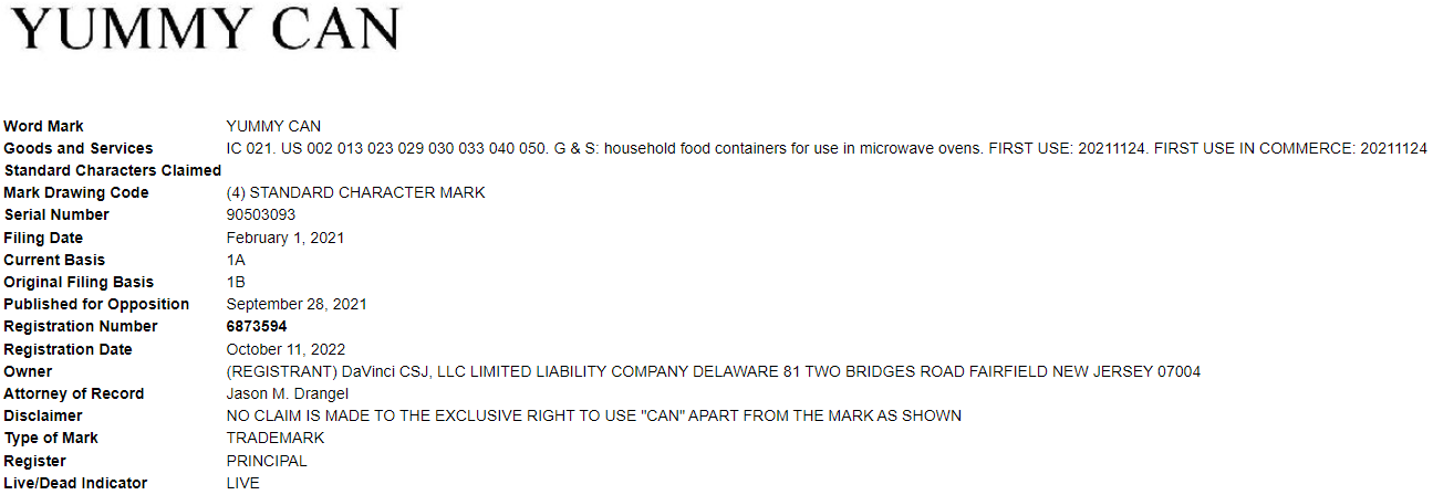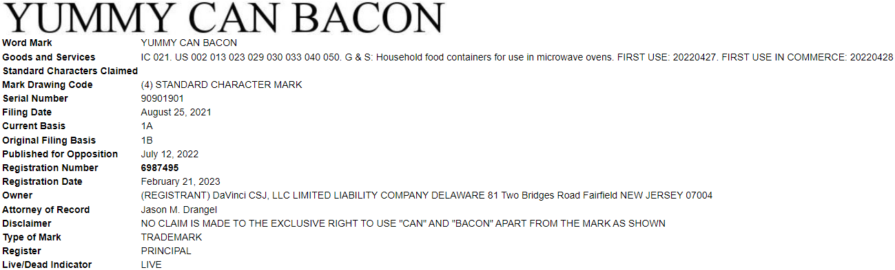 商标要注意YUMMY CAN BACON和YUMMY CAN: