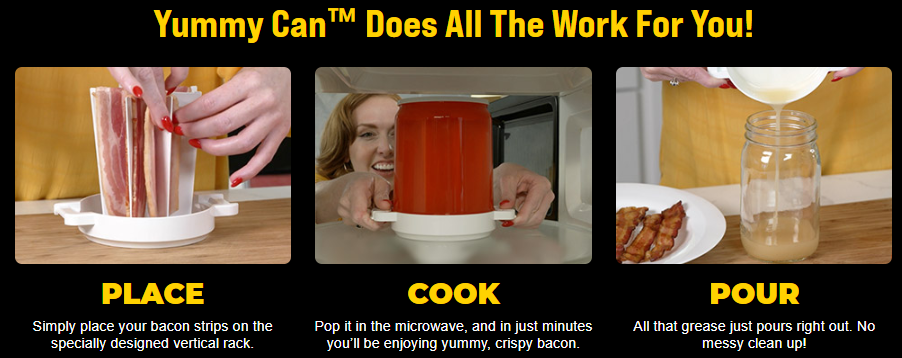 YUMMY CAN BACON是一款采用特殊防溅设计,保证培根不乱并均匀熟透的微波炉培根架。