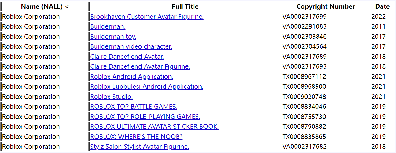 除商标侵权外,卖家也要留意版权侵权。在美国版权局也查询到了相关的版权登记信息,Roblox游戏人物形象等未经授权切勿使用。