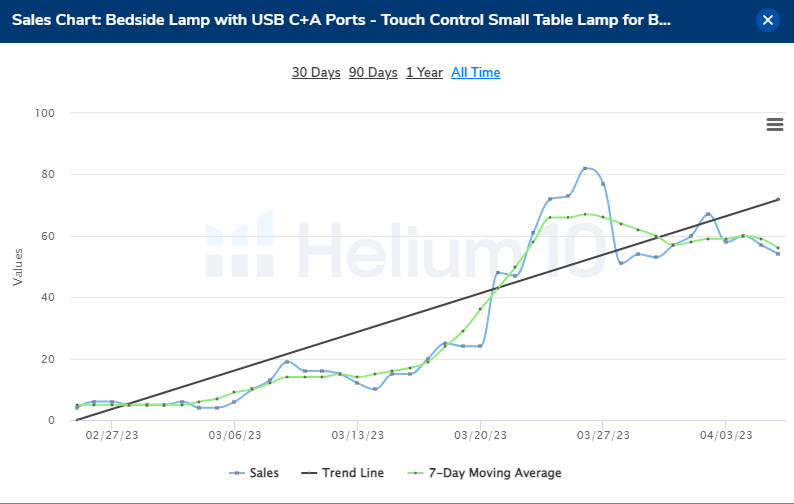 在3月6日直接价格从$29.99降低到$19.99,通过低价方式让单量迅速提升到10+ 。3月6日的降价是其第一个转折点。