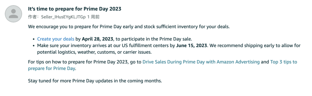 不管是存储空间还是处理速度都是第一梯队,这个额新仓库正式投入使用,是整个澳大利亚FBA系统一次质的飞跃。此前我给大家讲过澳大利亚这个站点的优劣势,本来同属欧美一系的发达国家市场,澳洲站理应表现不错,起码也是个小而美的站点。17年开始邀请制招商的时候卖家们也都这么想,挤破了头想要搞到一个澳洲站邀请名额,但是实际上澳洲站的表现让人跌破眼镜。因为澳洲站开放前亚马逊在线下进行大规模造势,所以第一批入驻的卖家自配送就出了几百单,但是到第二天就直接跌到十几单几单,再往后流量就几乎触底。 暴露出来的问题是亚马逊在澳洲的物流系统布局严重不足,仓库少、配送站少、司机和卡车都少,运力极其低下和自配送拉不开差距,澳洲消费者选择用脚投票,纷纷离开亚马逊选择其他电商平台。即便是后来澳洲站取消邀请制全线开放招商,也鲜有人问津,真的是把一手好牌打烂了。 不过自2019年以来亚马逊在澳洲市场卧薪尝胆,现在的澳洲站已经有了天翻地覆的变化。 “ 亚马逊澳洲站现状 目前澳洲市场的消费者互联网渗透率高达96.2%,电商渗透率更是达到了74.0%,平均每个澳洲消费者年均网购消费2033美金,客单价在欧美发达市场对比也都是非常高的水平,本身底子就不差。 亚马逊在经历了开站前期的骚操作之后也开始回到正轨,一直在不断完善FBA物流系统,并且大力完善网站和服务内容,同时线下也在砸钱推广。在去年6月亚马逊澳洲站成为澳洲月访客量最高的电商网站,12月登上澳洲电商网站全球月访问量第一。这次的超大FBA仓库投入使用,进一步提高消费者的购物配送体验,对澳洲站来说更是如虎添翼。现在的澳洲站已经今非昔比,如果卖家考虑开拓新市场,同为英语环境的澳洲站也是一个不错的选择。 “ Primeday提报截止日 亚马逊最近在后台宣布了2023年Primeday活动提报截止时间,卖家需要在4月28日之前创建Primeday秒杀活动。 同时公布的还有Prime day货物入仓截止时间,按照要求,卖家需要在6月15日之前把需要参加大促的商品送进FBA仓,超过这个时限的货件很可能进仓时间会被延迟,进而赶不上大促活动。 活动截止时间一公布,接下来的一段时间就是会员日前最重要的备战期,在活动排期出来之前,大家都可以做一些工作来让排期更好。建议资源不多的卖家可以对销量更好的产品进行一些资源倾斜,从广告报表里面找出表现最好关键词和投放产品,为ROAS高但是展现比较少的词增加竞价。 这里除了日常的关键词优化手法之外,还需要卖家们根据自己产品和Primeday的实际情况来更新关键词,例如在关键词/描述中埋入“gift”、“present” 以及它们的衍生词或者名称等词,来增大节日期间被消费者搜索到并点击的机会。以前有些卖家还喜欢给主图加上节日角标,不过现在加了有可能会被撤掉活动,如果参加的是LD,排期比较好的话建议还是不要放,万一取消损失重大,如果是免费活动的话大家还是可以放一下的。