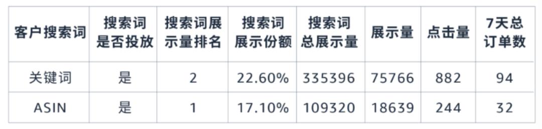 亚马逊全球开店:搜索词展示量份额报告显示了各个搜索词在不同广告活动、投放方式和匹配类型下的展示、点击和转化数据,可以帮助我们更全面地去分析关键词,了解自身竞争力和市场潜力大小,找到CPC的“最优解”。