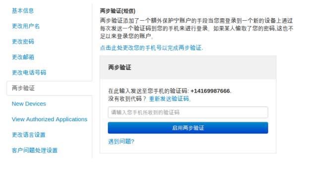 当您登录时需要您输入发送到您手机的验证码。设置好两步验证,如果有人盗取了您的密码,他们将仍然需要您的手机才能访问您的帐户。