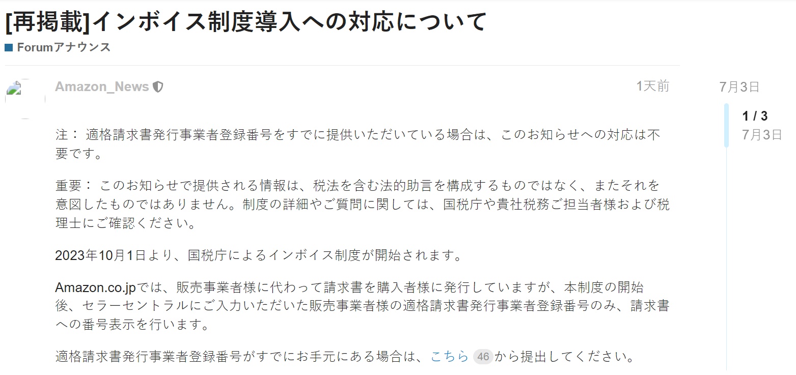 亚马逊日本站发布公告称,自2023年10月1日起,针对日本消费税(以下简称“JCT”)的合规发票留存制度将正式生效。