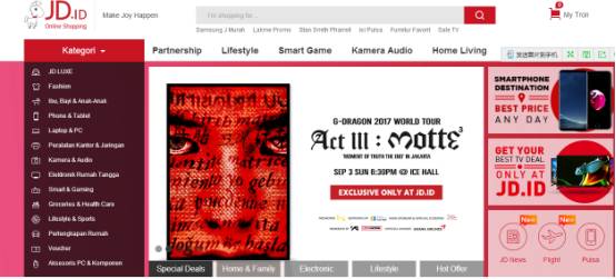 同年10月,京东印尼站上线,是继京东全球英文网站和俄罗斯网上商店之后建立的。