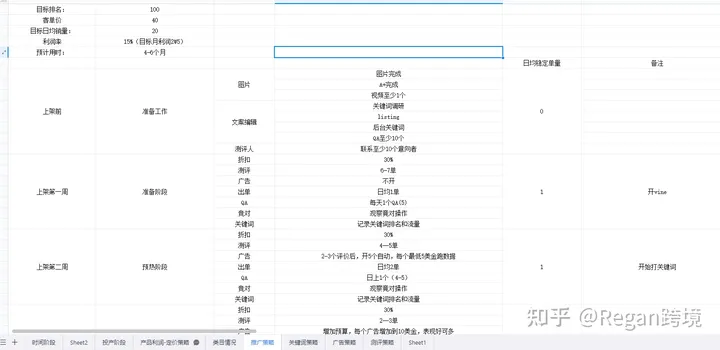 推广规划表是整体产品上架到推广的流程表格, 除此之外还有专门的推广表格,将我们的操作更加的细化:
