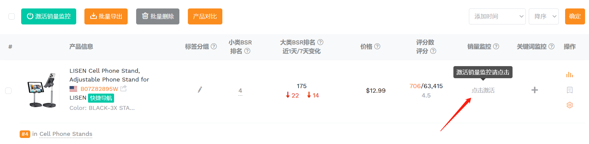 销量监控操作步骤如下: