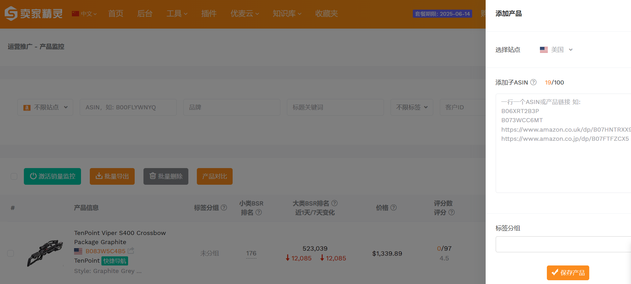 添加ASIN可通过复制ASIN或产品链接批量添加。