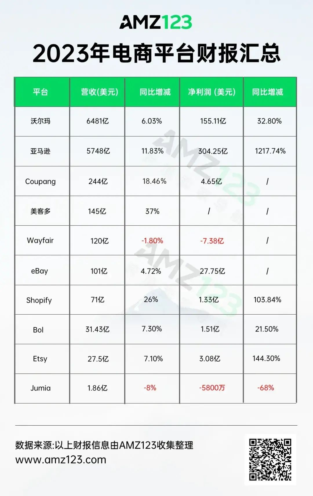 在经过裁员减招、踢除边缘业务、放缓增长步伐以及调整组织架构等一系列开源节流的举措后,亚马逊火速从2022年巨亏27亿美元的窘境中走出,并在2023年成功砍下净利润暴涨超1000%的华丽业绩,在一众电商平台中发挥亮眼。