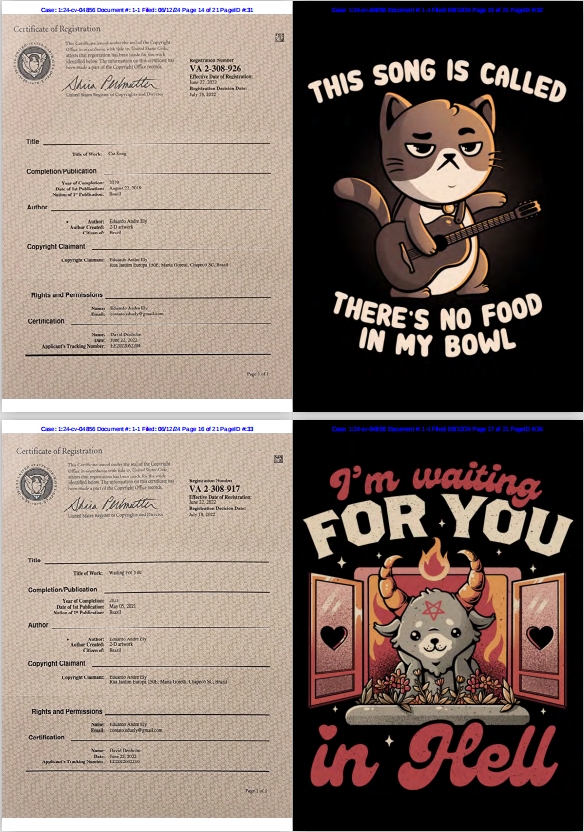 原告Ely是来自巴西的插画师和平面设计师。Ely的作品侧重于可爱和邪恶的插图并带有一点幽默。