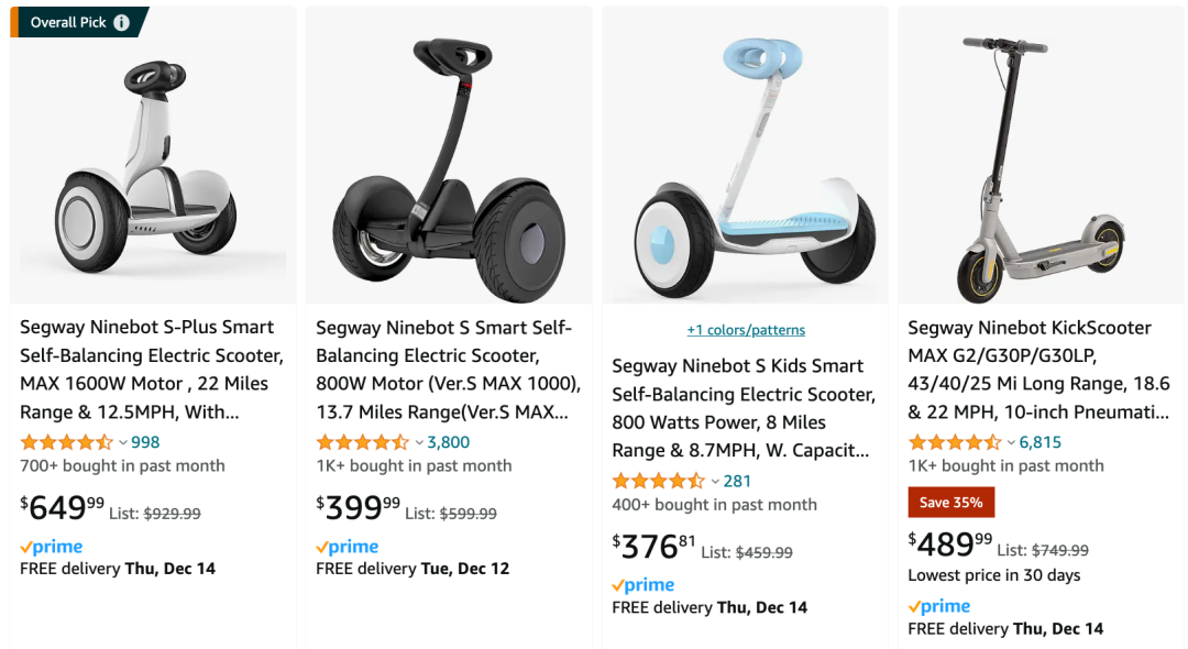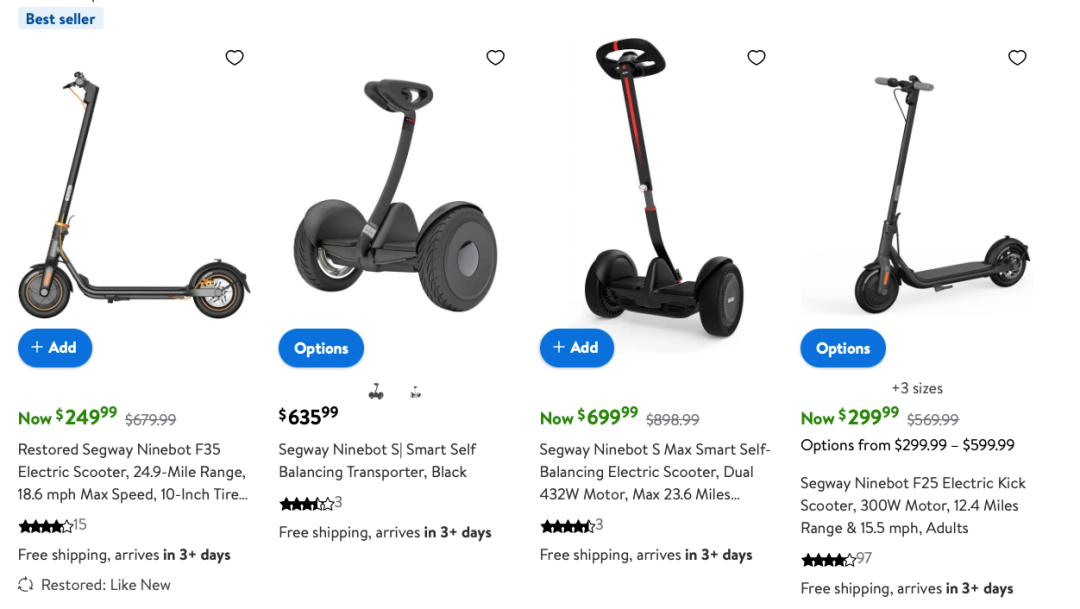 同样,在沃尔玛,Segway的表现也相当不错,有多款Best seller级别产品。