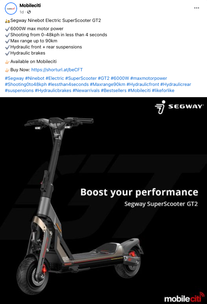 在Segway的社交媒体上,它采用了多种不同形式的内容,例如展示了大量不同达人/名人使用产品的场景,增加品牌的“明星味”。