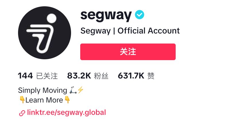 TikTok上Segway也相当活跃,segway的TikTok官方账号有8.3万粉丝,63万点赞。