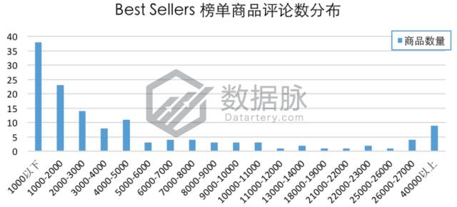 在上周登榜Cell Phones & Accessories品类Best Sellers榜单的商品中,单个商品拥有的最大评论数为47764.0,最小评论数为19.0条,平均评论数9549.72条,评论平均星级4.27星。骆探长 (shujumai.com)发现,其中有26.76%的上榜商品评论数在1000条以下,另有16.20%的上榜商品评论数在1000-2000之间。此 外,上周共有9款商品的评论数超过了40000条,占上榜商品的6.43%。