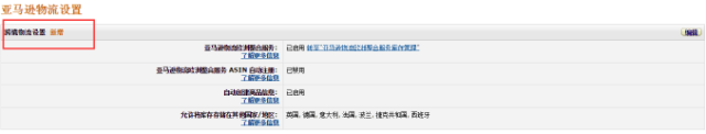 1.后台点击“设置”选择“亚马逊物流”进入以下页面,会有一个新增加的功能—跨境物流设置