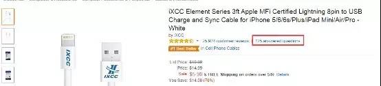 问题回答板块,对于功能性较强或复杂的产品,这块一定要重视,亚马逊会读取到这个数据从而将其计算到搜索引擎算法里面。另外一个角度,它是影响转化率的一个要素,以下截图可见到这个数据直接放在review的同一行。所以做好Answered Questions的板块,会影响搜索排名。