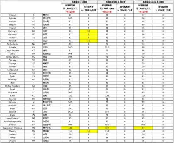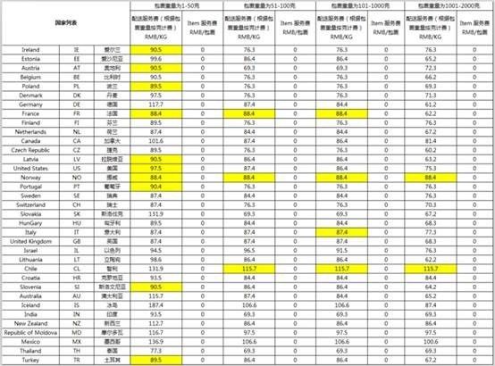 备注:标黄色部分为此次运费调整涉及变动的报价,其余报价保持不变。