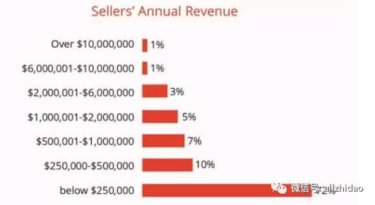 三成的卖家年销售额可以突破30万美元 另外入驻亚马逊的卖家们年销售额从几千美元到几百万美元不等。72%的卖家在亚马逊上的年销售额不到25万美元。事实上,这个比例还在增加,因为不断有新卖家加入。