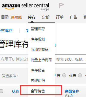 (1)打开欧洲站后台,点击“库存”——“全球销售”