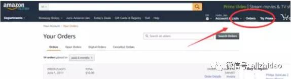 首先登录亚马逊买家账号 > 点选右上角 [Orders]