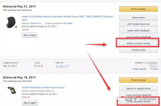 接下来找到要评论的订单 > 点选 [Write a product review]