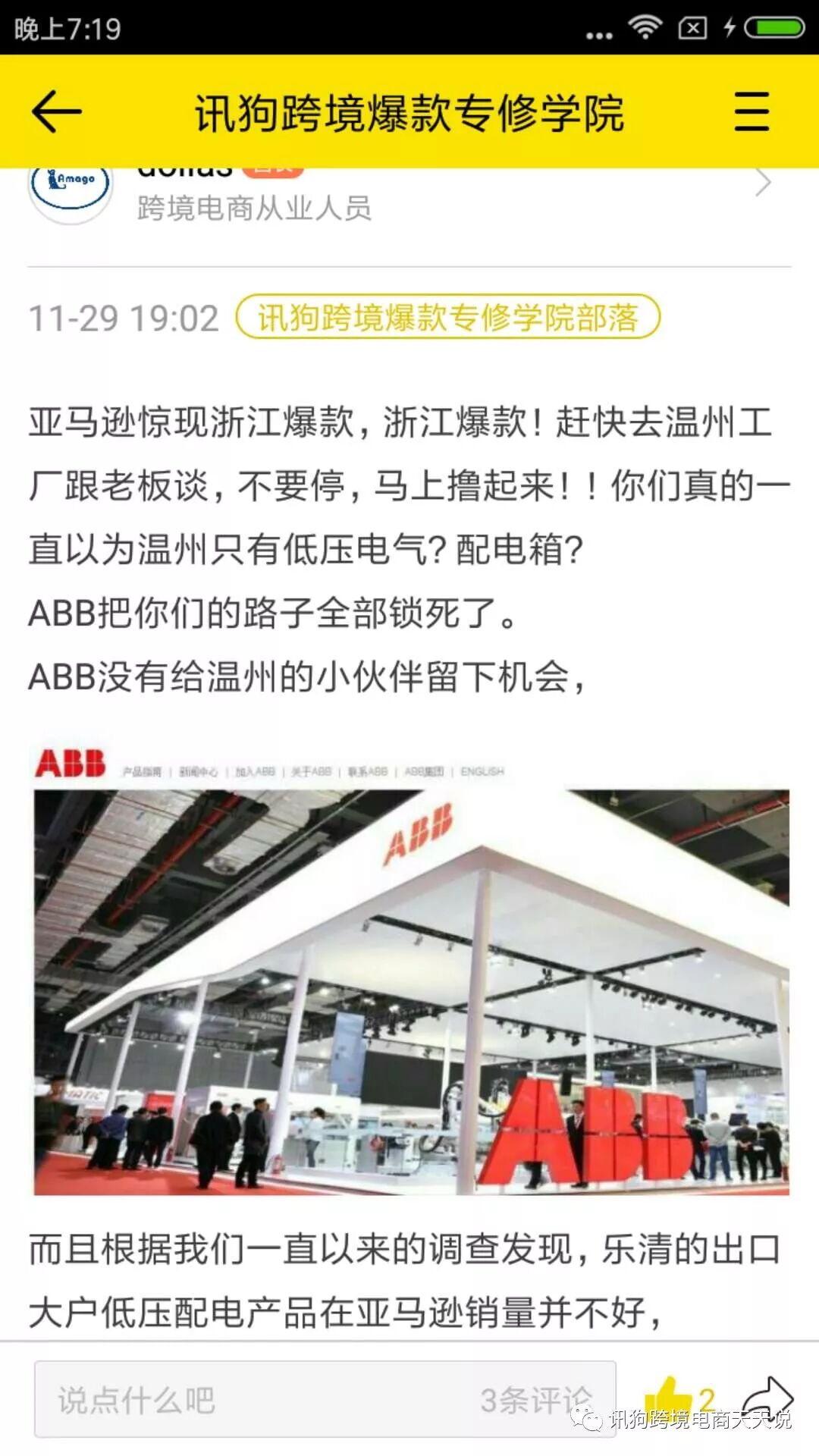 我们之前给大家提的建议就是用乐清的做低压配电产品的产业优势去做亚马逊热门款开款。