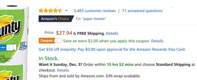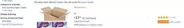 除了常见的deals促销页面的产品展示机会外,有Coupons的产品在搜索结果页面会有Coupons badge,这可以提高产品从被搜索展示到被点击的转化率。
