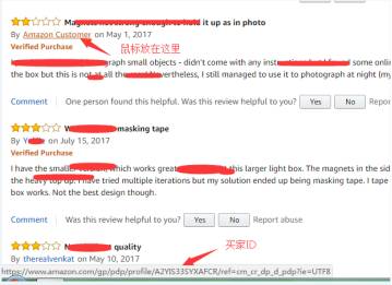 第一步:找到差评,把鼠标放在买家名字那里,网页的下方会出现一个链接,profile后面的就是customer id。