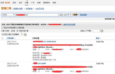 第二步:找出customer id之后去亚马逊后台管理订单里面用ASIN码搜索对应时间段的所有订单,我们看评价日期是5月1日,我们就找到5月1号之前的订单页面。