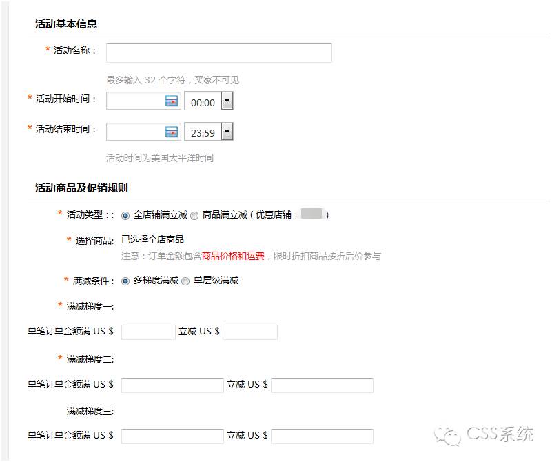 主要分为店铺满立减活动和商品满立减活动,设置条件分别可为多梯度满减和单层满减。