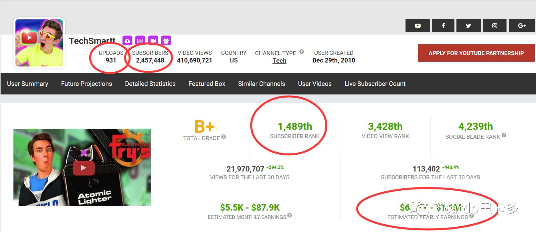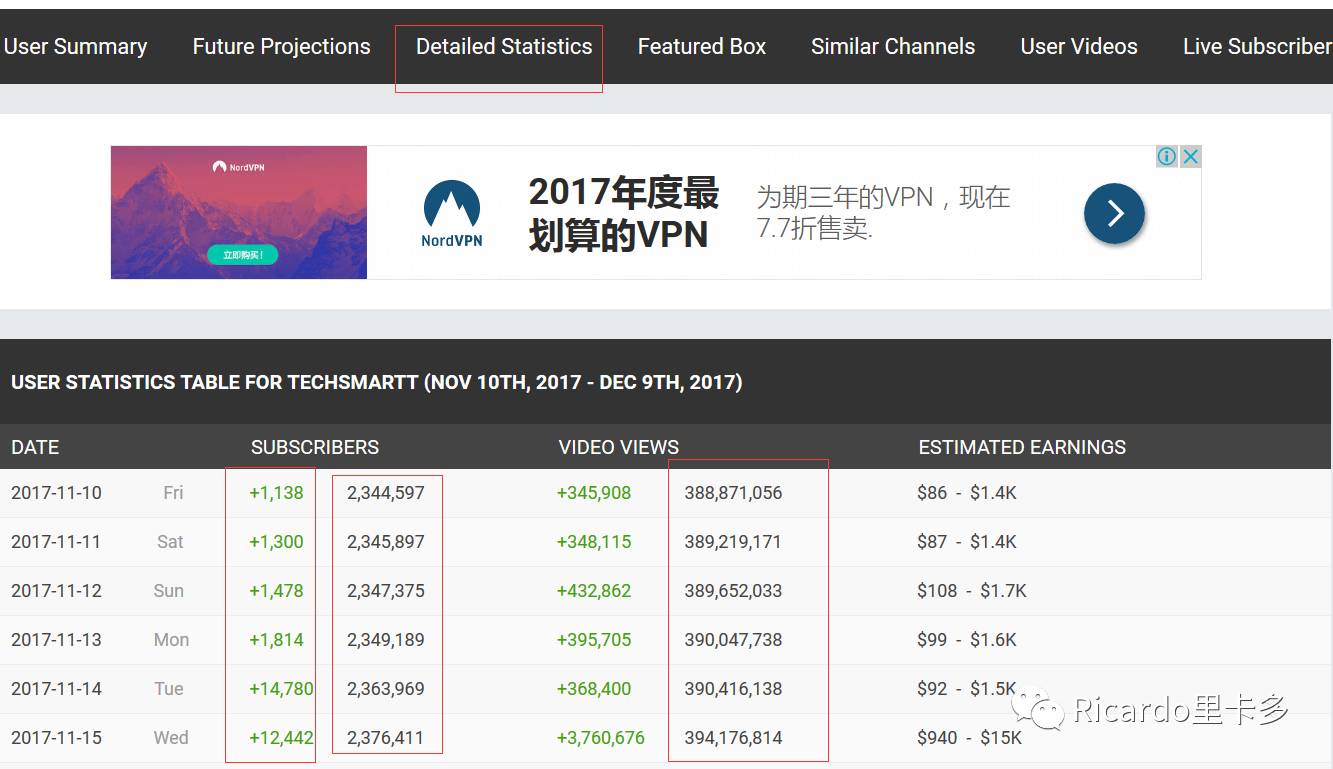 然后他的earning(这个只是youtube给他)不算合作费用。