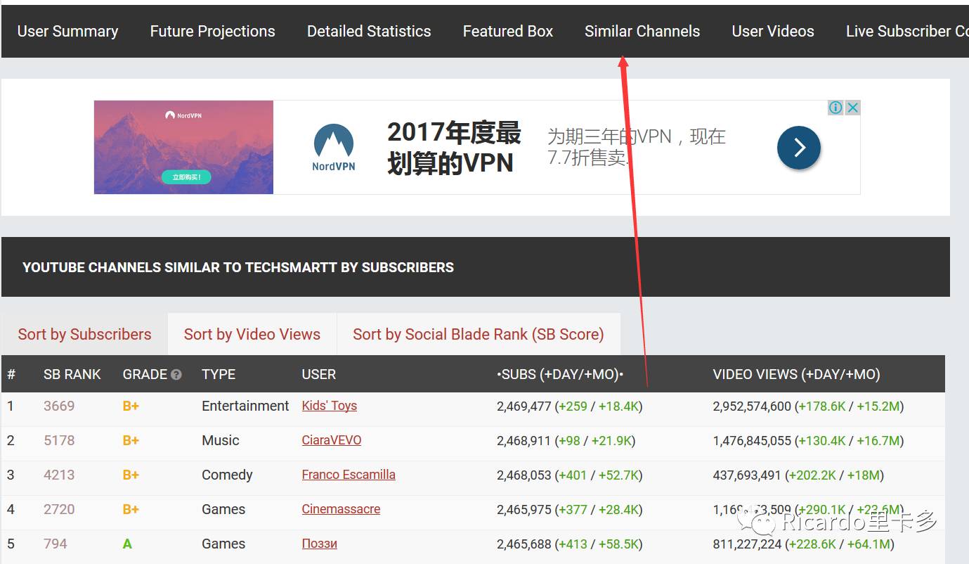 还有一个网站我建议大家看看,我们可以看看youtuber的影响力
