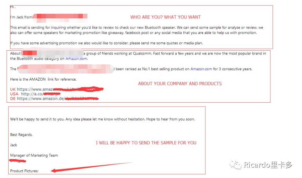 我跟红人沟通了差不多三年,然后发现有一种邮件效果会好一点。也是比例的问题,但是红人看这种邮件基本上会感觉我们专业一点。