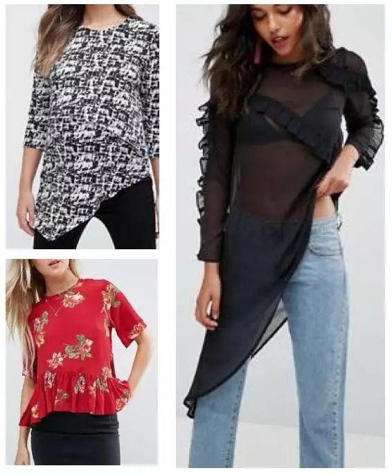 运用斜角的剪裁可制造出不对称的轮廓,配上印花拼贴更可以加强不平衡效果,却能在视觉感官上更好的展现女性的身段。