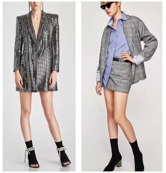 今季套装潮流受70年代短版时装风所启发,主推简洁线条的外套、短身针织毛衣、衬衫。短裙与正装可混搭各类皮料、蛇纹图案、珠片绣等元素,打造出独特的玩味。