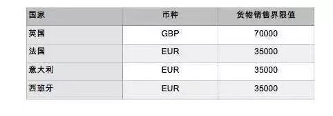 - 不能超过各个国家的货物销售界限值,常见国家见下表