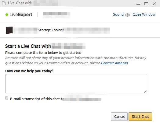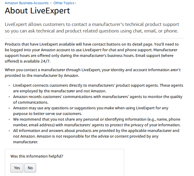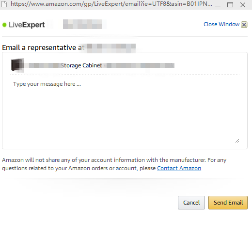 当您通过LiveExpert联系制造商时,亚马逊不会将您的身份和帐户信息提供给制造商: