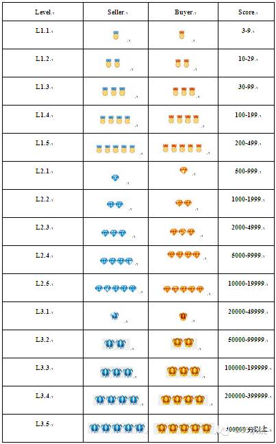 信用积分决定店铺信用等级标志,见下图: