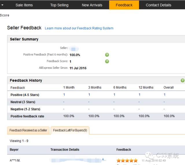 今天Nancy主要跟大家讲解速卖通的店铺评价,账号做了30来天,生效的评价是9个好评,我们先来看店铺后台feedback的截图: